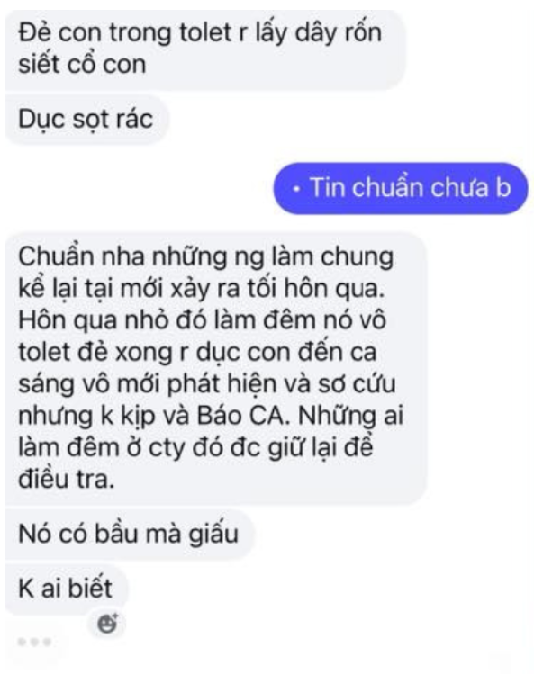 Bến Tre: Đi làm công ty, có b:ầu nhưng gi:ấu, mang k:éo vào WC rồi s:iê’t c:ổ, bỏ con vào s:ọt ra’c.