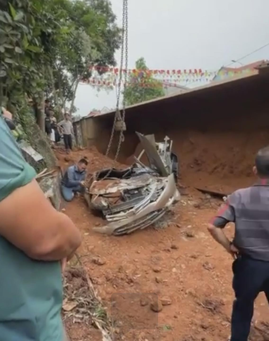 Xe tải chở đất lật đè ô tô con ở Phú Thọ, 2 người tử vong